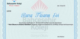 Bursa Modern Bahçeşehir Koleji Hızlı Okuma Katılım Sertifikası